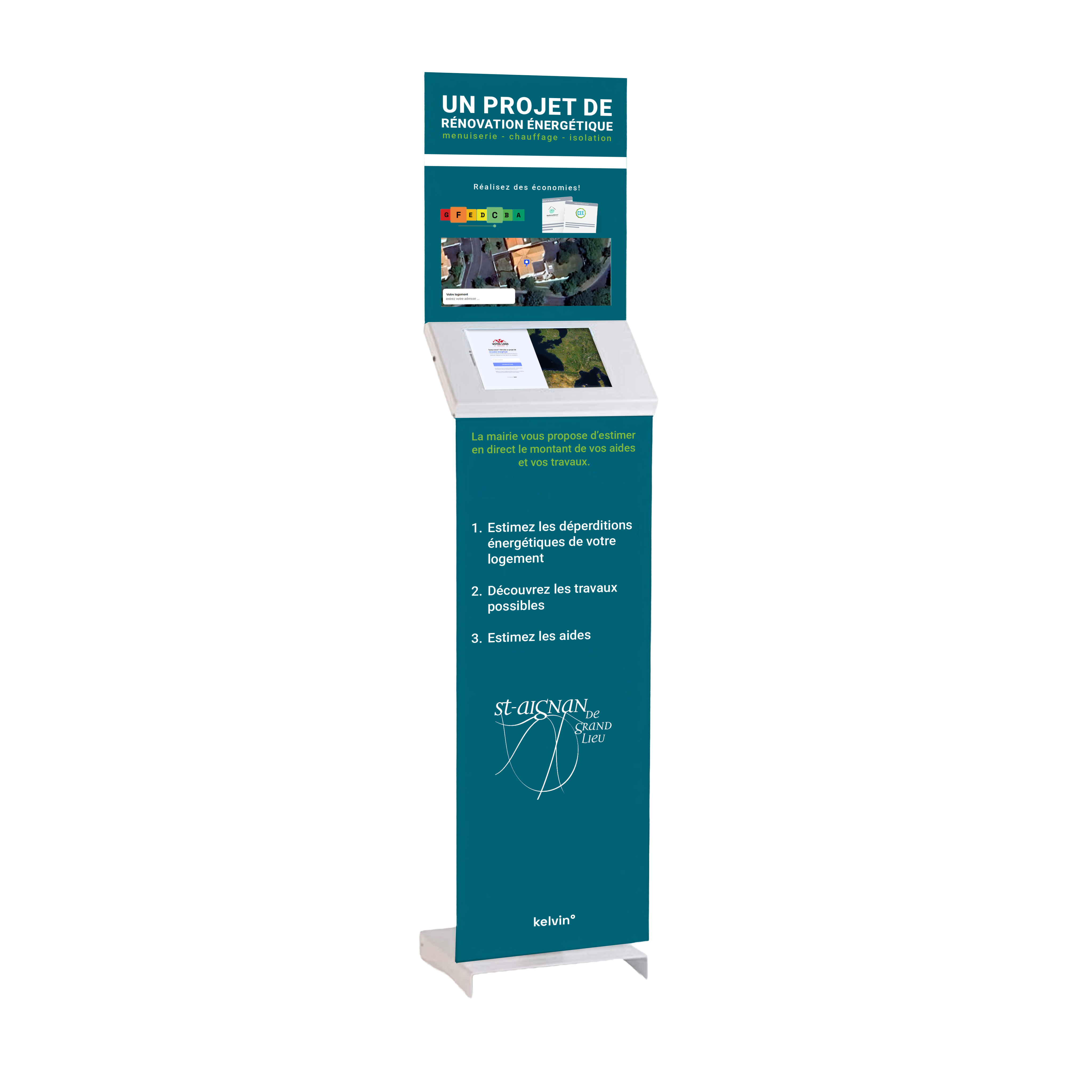Une borne interactive change complètement la dynamique. Le particulier garde la maîtrise. Il explore. Il teste. Il obtient des résultats concrets sans avoir à parler à personne. Et en échange, il laisse ses coordonnées.